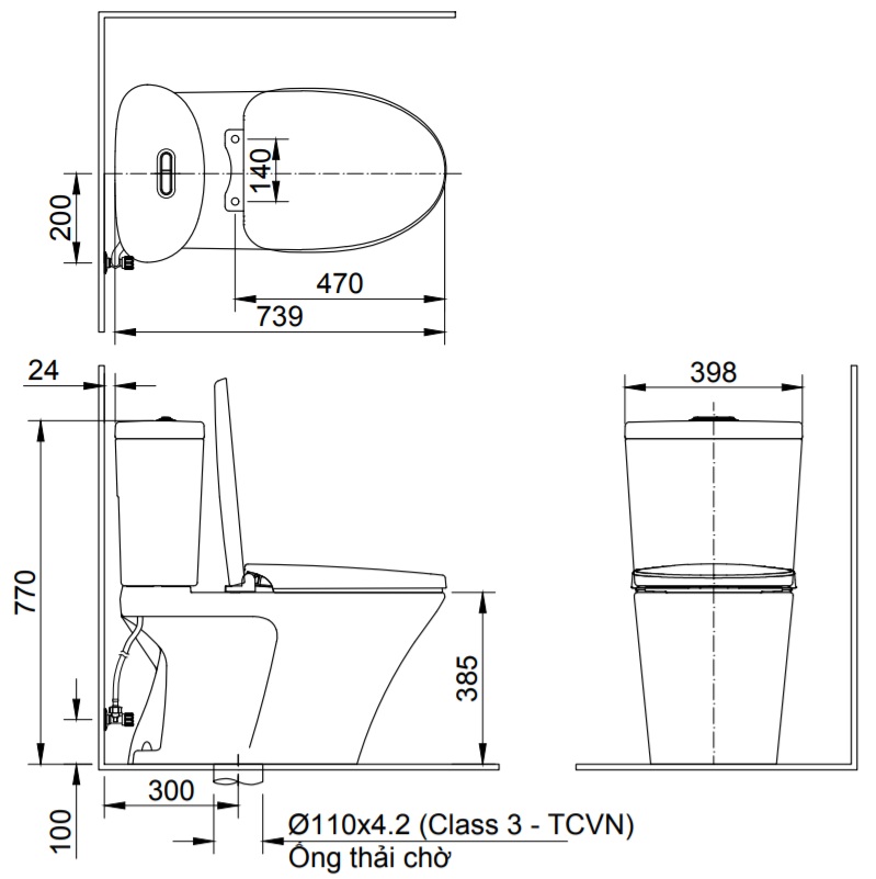 - Kiểu xả Siphon dạng gạt 1 mức: 6.5L