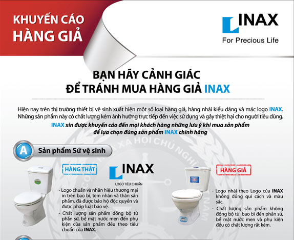 Trên thị trường hiện nay đang tràn lan rất nhiều các sản phẩm kém chất lượng mà dán tem mác của Inax bán như sản phẩm chính hãng.