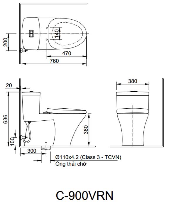 - Đã bao gồm van vặn khóa A-703-6, đế thải nước T-91V.